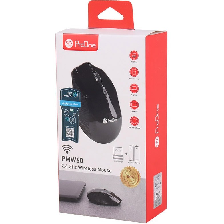 موس بیسیم PROONE PMW60 | سبک، ساده و مناسب کاربری روزمره