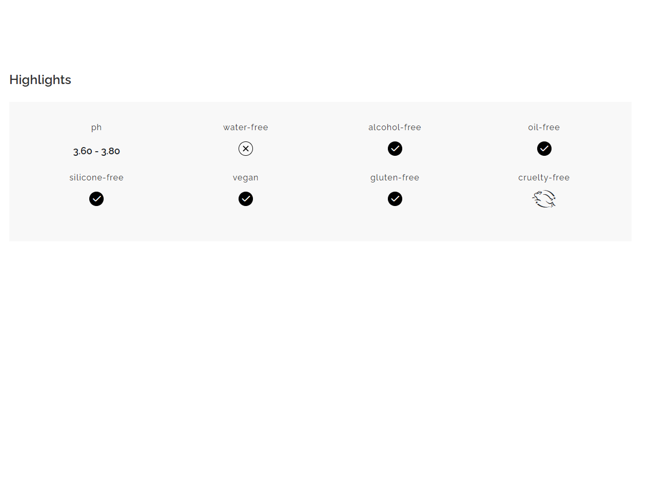 بدون الکل ,بدون تست حیوانی ,بدون سیلیکون ,بدون گلوتن ,فاقد چربی (بدون روغن) ,وگان (گیاهی) |