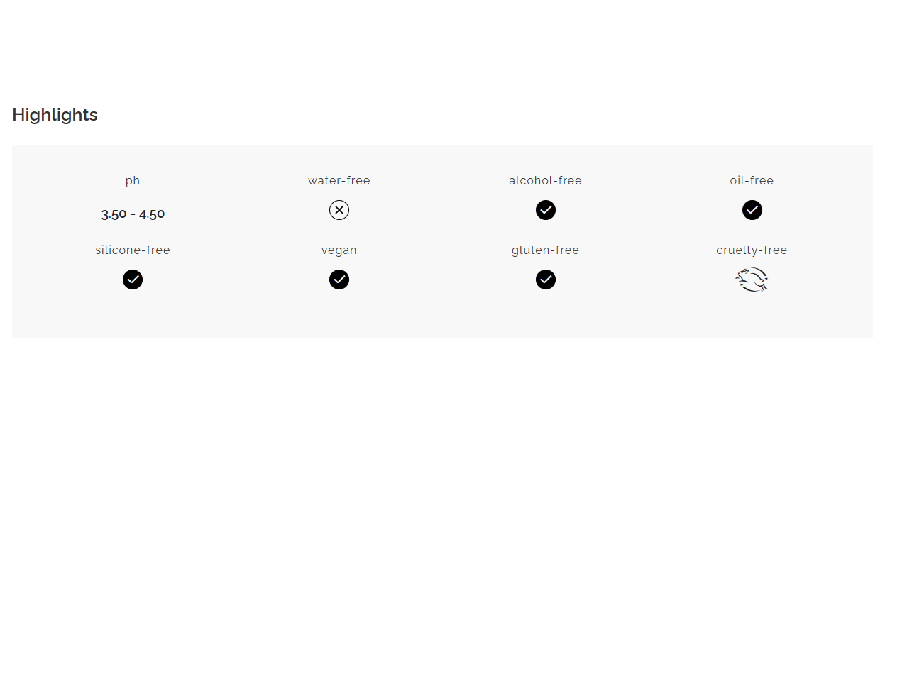 بدون الکل ,بدون تست حیوانی ,بدون سیلیکون ,بدون گلوتن ,فاقد چربی (بدون روغن) ,وگان (گیاهی)  |